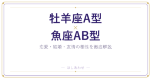 牡羊座A型と魚座O型の総合相性は★4つ。星座同士の位置関係はすれ違いが生まれやすい配置ですが、A型とO型という血液型の組み合わせがとても良く、星座の壁を大きくカバーしてくれる関係です。