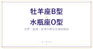 水瓶座B型はリアクションが淡白に見えても、一緒に行動してくれていること自体が好意の表れです。牡羊座B型は言葉での確認を求めすぎず、「一緒にいてくれている」という事実に目を向けてみましょう。逆に水瓶座B型は、ときどき素直な一言を添えてあげるとバランスが取れます。