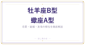 牡羊座B型と蠍座B型は、B型同士の自由さが緩衝材になりつつも、「広く飛び回る探検家」と「深く掘り下げる職人」という方向性の違いがじわじわと表れやすい★3の組み合わせです。お互いの世界を尊重しながらも、意識して交わる時間をつくることで、自由と深さが共存するふたりだけの心地よい距離感を育てていけるでしょう。
