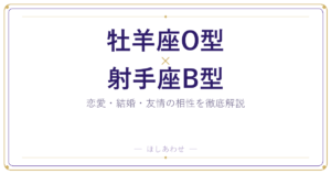 牡羊座O型と射手座O型の総合相性は★4つ。星座同士の相性が非常に良い組み合わせで、さらに同じO型という共通点もあるため、出会った瞬間から意気投合しやすいペアです。行動力とスケールの大きさを共有しており、一緒にいるだけで世界がどんどん広がっていくような楽しさを味わいやすいでしょう。