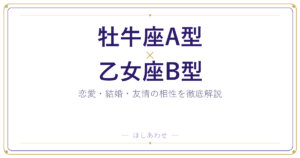 牡牛座A型と乙女座A型の総合相性は★4/5。星座の相性が良く、自然体でいられる組み合わせです。似ているからこそ「言わなくても伝わる」に甘えず、感謝や気もちをことばにする意識を持てば、ずっと安心できるパートナーになれるふたりです。