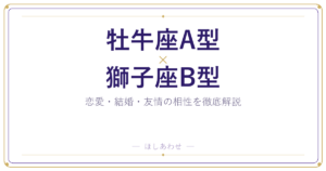 意外かもしれませんが、この組み合わせは見た目の印象ほど悪くありません。牡牛座A型と獅子座O型は性格の方向性こそ異なるものの、血液型の相性がしっかりと関係を支えてくれるペアです。